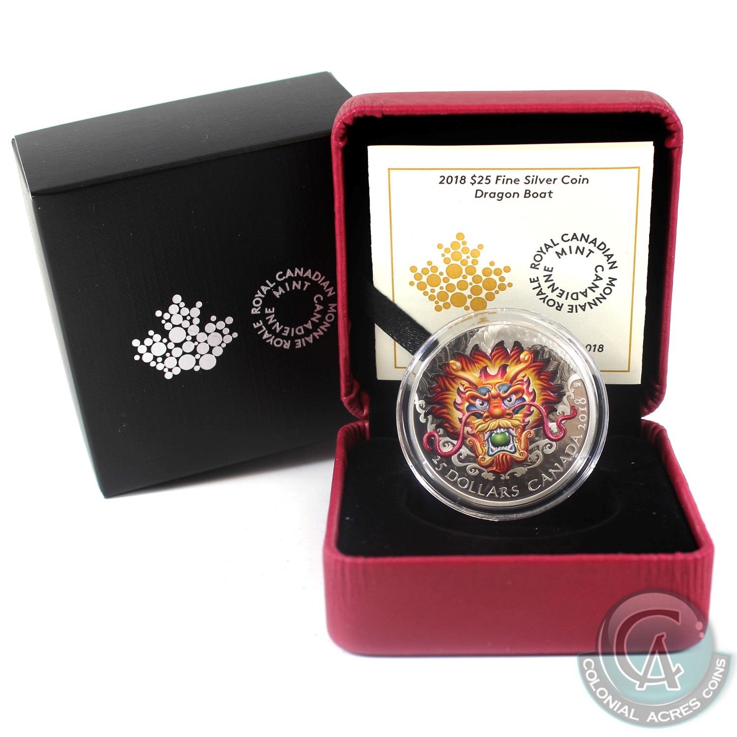 2018 Canada $25 Dragon Boat Fine Silver Coin. (TAX Exempt)