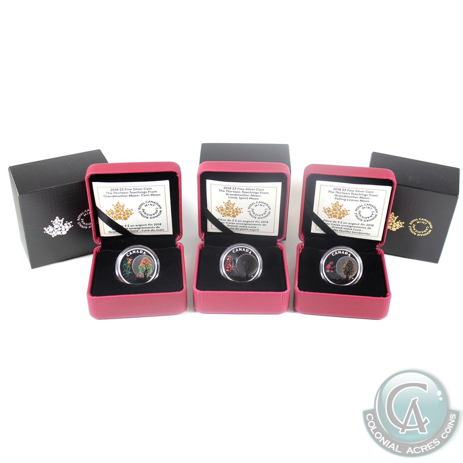 2018 Canada $3 The Thirteen Teachings from Grandmother Moon Fine Silver Coins - Falling Leaves Moon, Corn Moon & Little Spirit Moon. 3pcs (TAX Exempt)