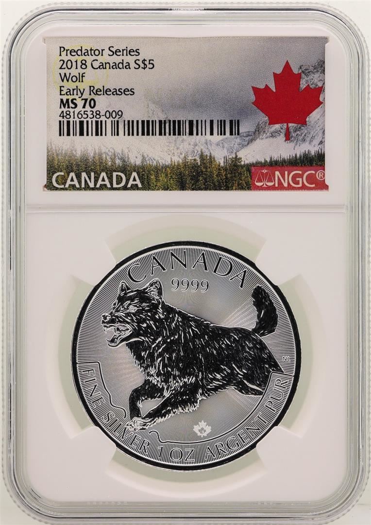 2018 Canada $5 Predator Series Wolf Silver Coin NGC MS70 Early Releases