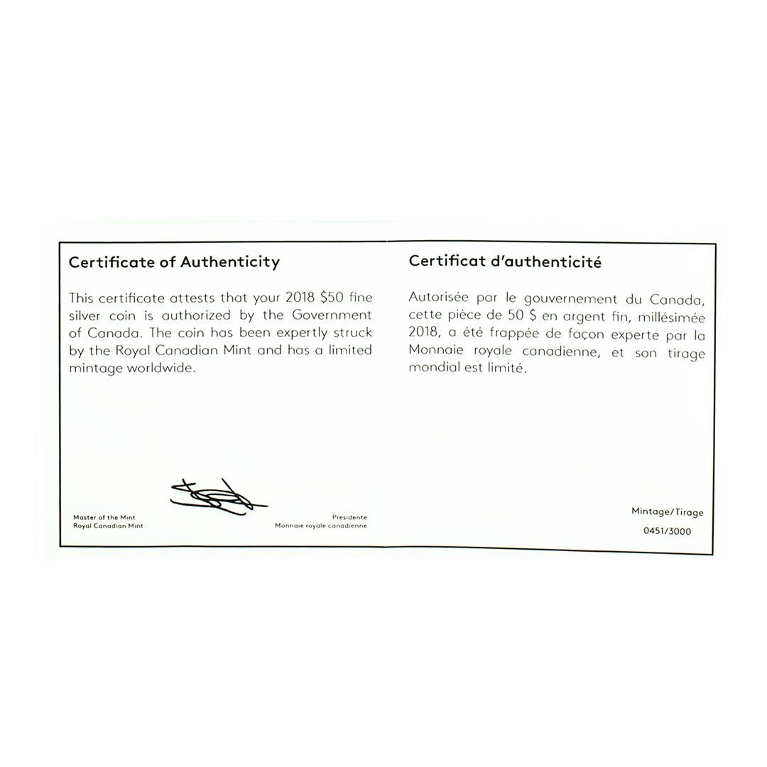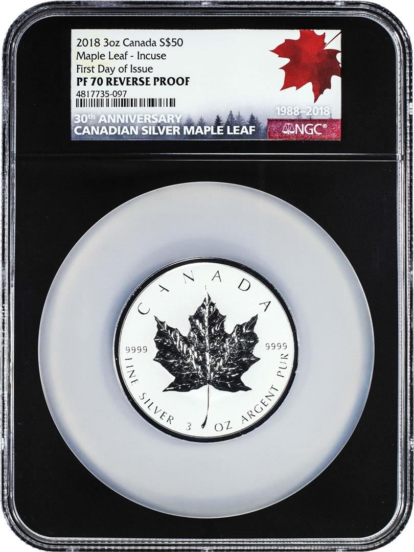 2018 Canada $50 Proof Maple Leaf 3oz Silver Coin NGC PF70 Reverse Proof FDOI