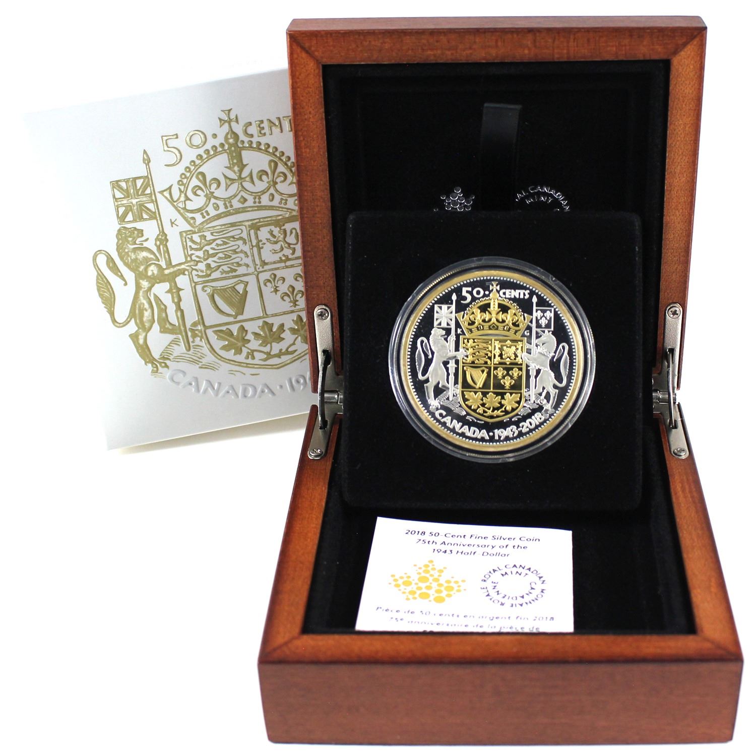 2018 Canada 50-cent 75th Anniversary of the 1943 Half Dollar (TAX Exempt) Comes with all original packaging. Light scuffs on capsule.