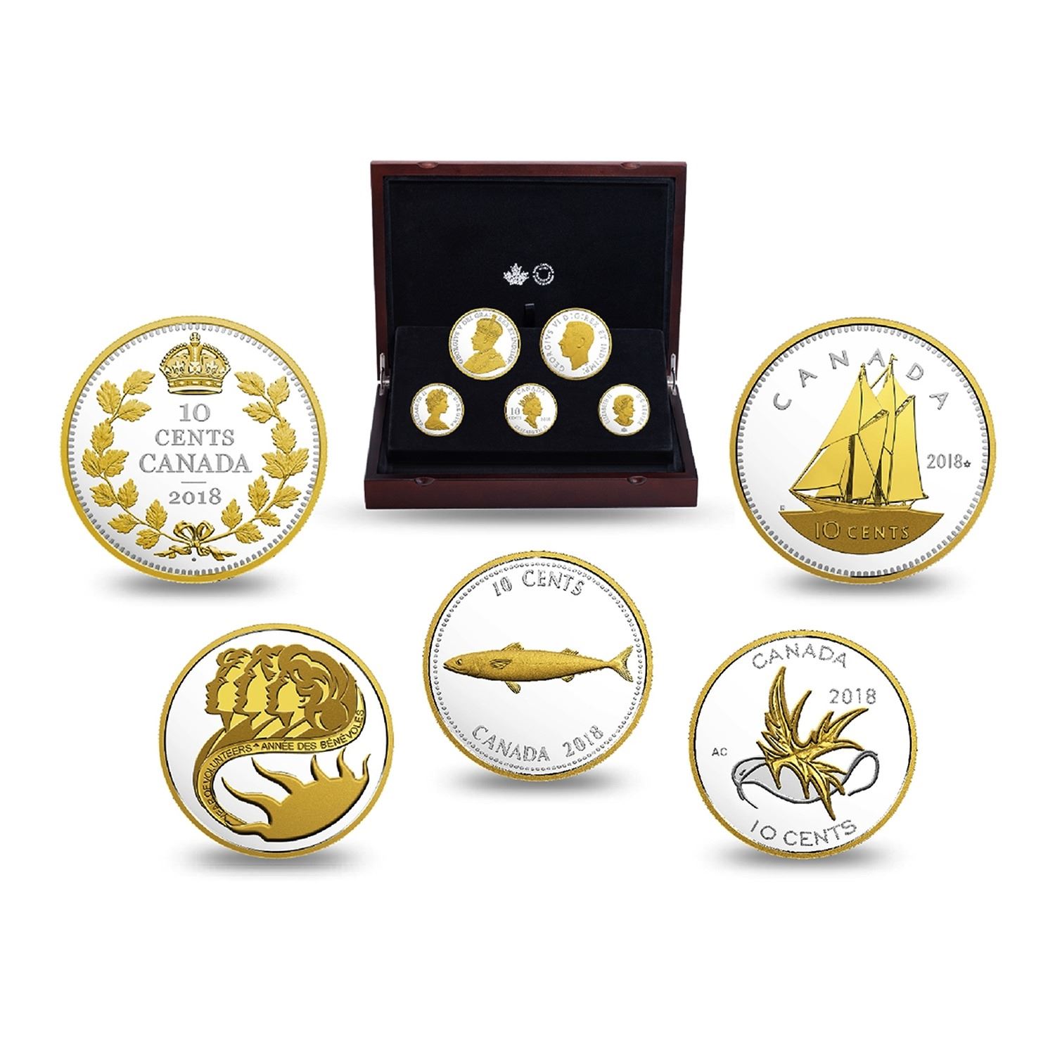 2018 Canada Legacy of the Dime 5-Coin Fine Silver Set (The 2 large coins are lightly scratched) TAX Exempt.