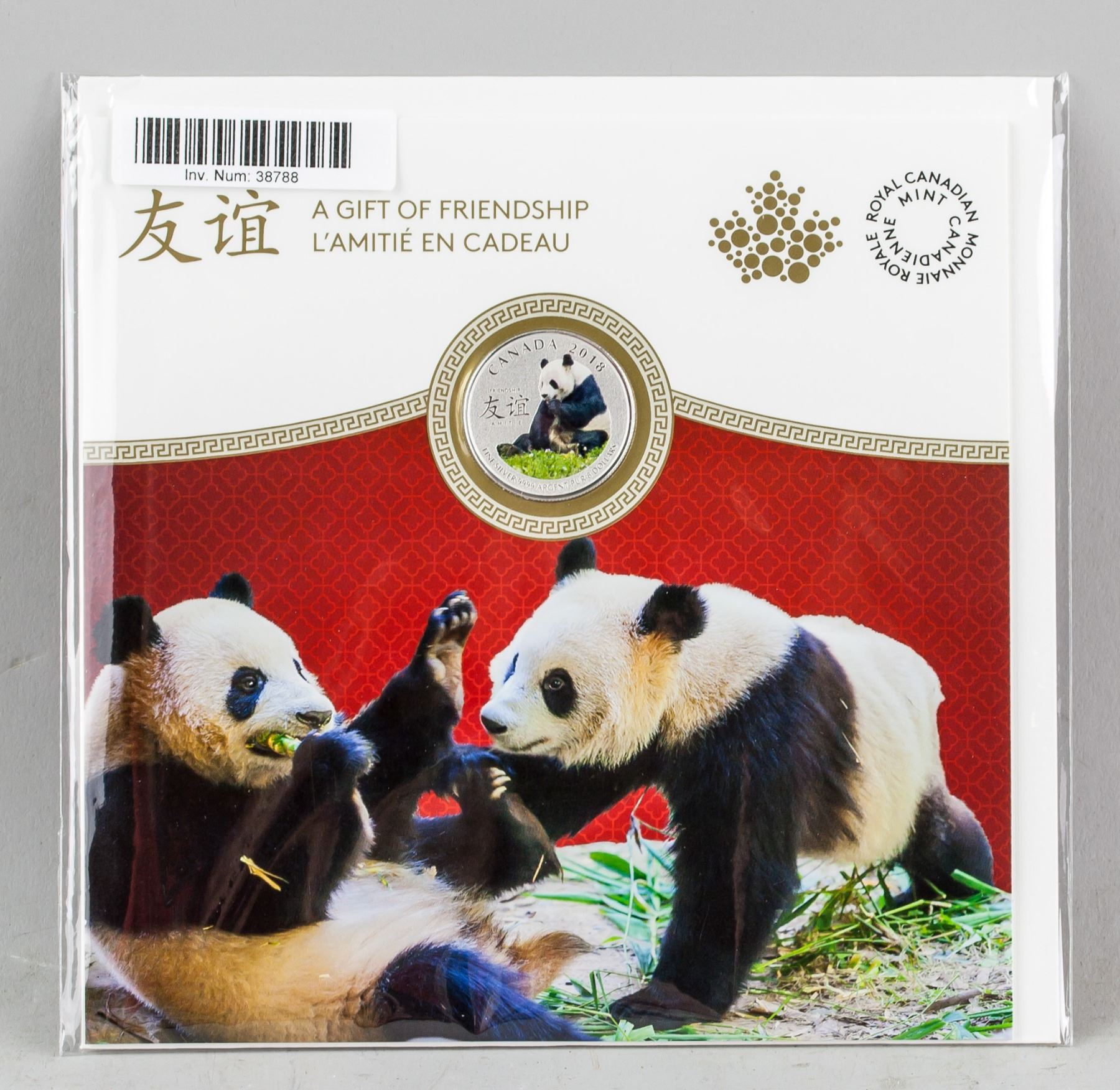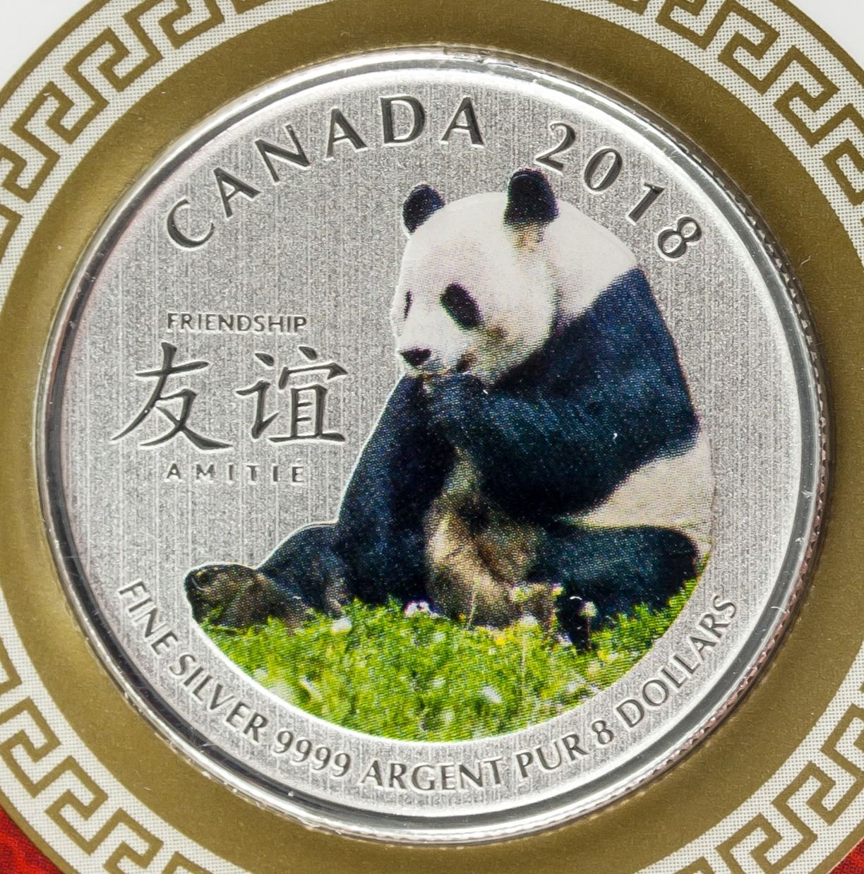 2018 Canadian $8 fine silver coin with postcard, commemorative issue The Peaceful Panda, a Gift of Friendship, D: 27.37 mm