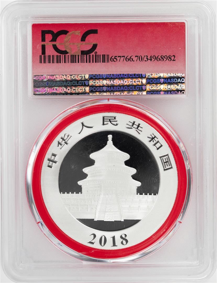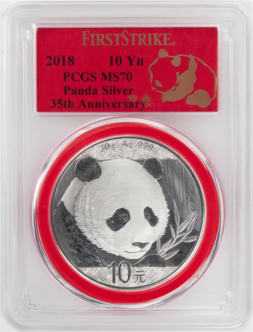 One 2018 China 10 Yuan Panda Silver Coin PCGS MS70 First Strike. PCGS Graded.