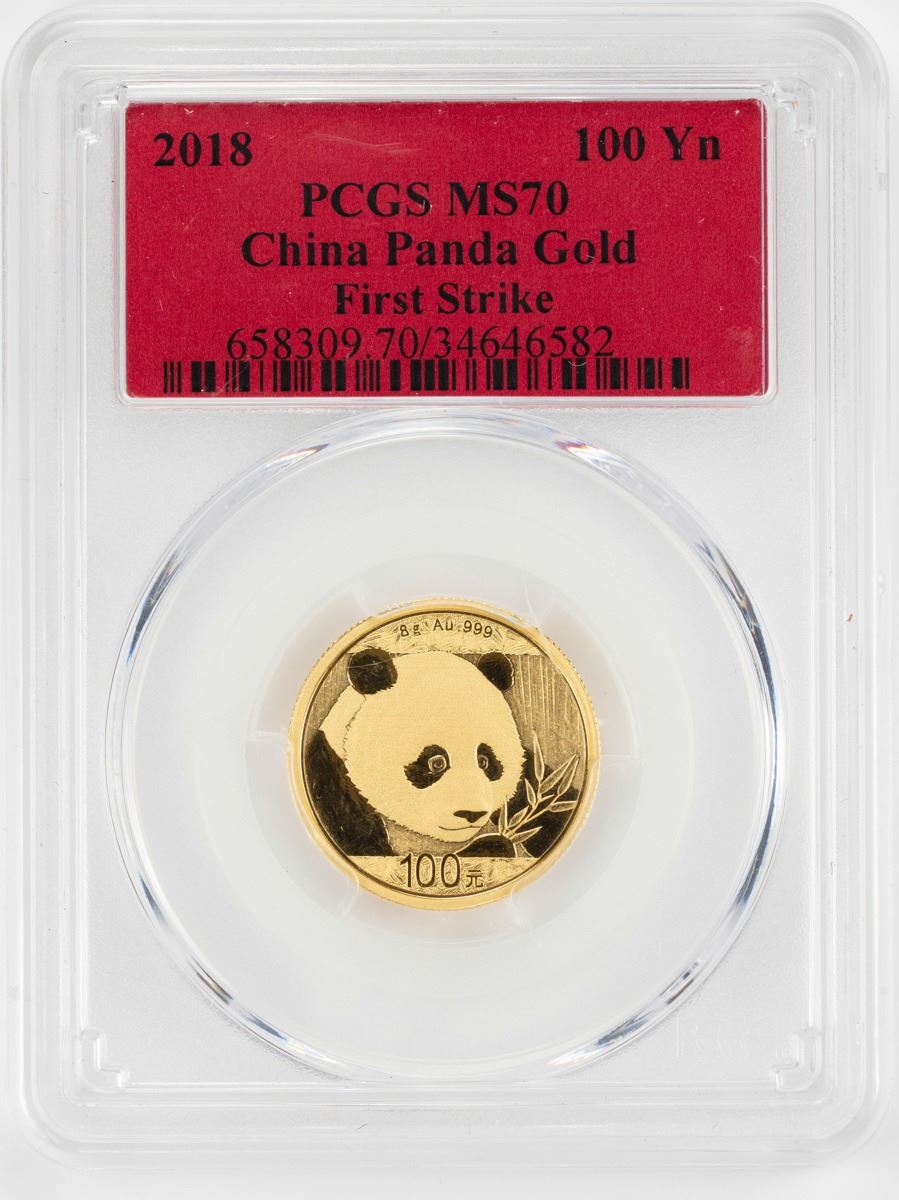One 2018 China 100 Yuan Gold Panda Coin PCGS MS70 First Strike.