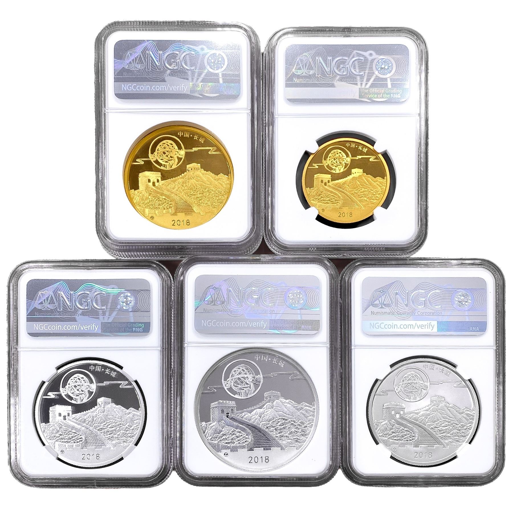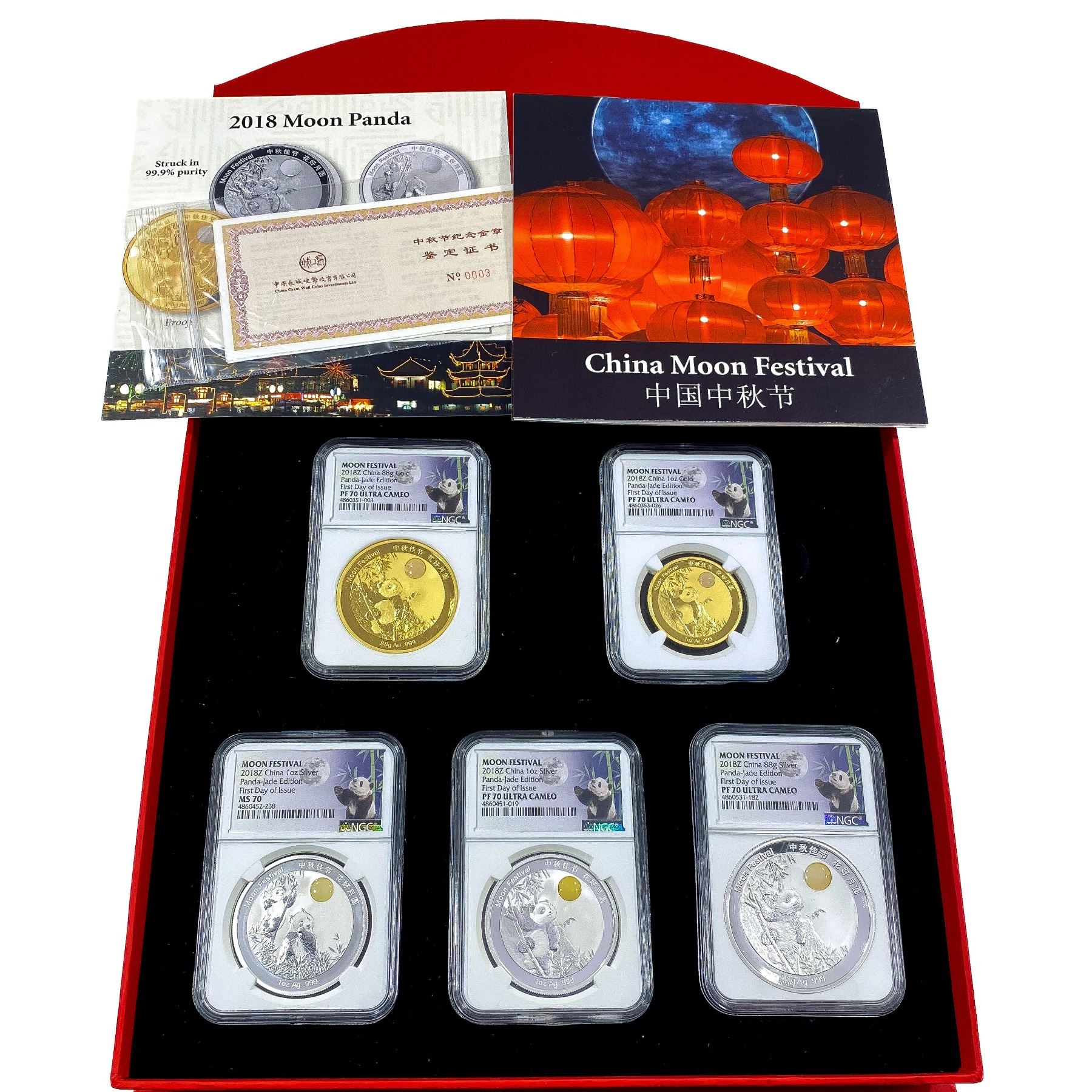 2018 China 5PC GLD/SLV Moon Panda Set FDI [5 Coins