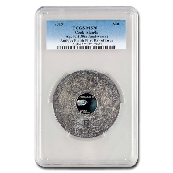 One piece 2018 Cook Island 3 oz Meteorites The Moon Apollo 8 MS-70 PCGS