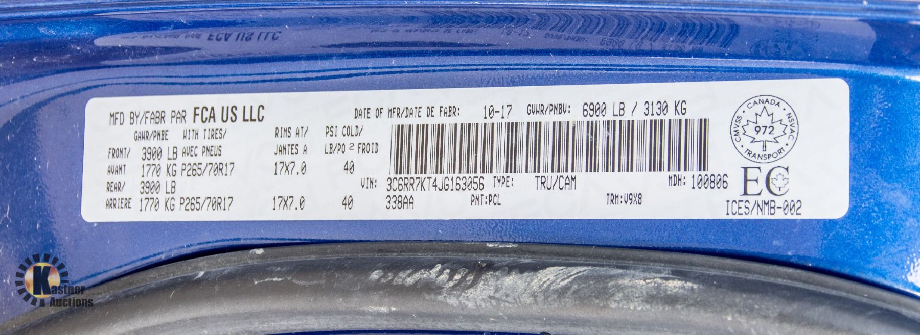 VEHICLE FEATURES NORMAL ACTIVE STATUS, CRUISE CONTROL, AIR CONDITIONING, CLOTH SEATS, POWER DOOR LOCKS, POWER MIRRORS, POWER WINDOWS, 4X4 DRIVE, TOW/HAUL . WINDSHEILD IS CRACKED, HAS SOUNDS ON COLD START UP, 265/70R17 TIRES. VEHICLE IS FROM SASKATCHEWAN.