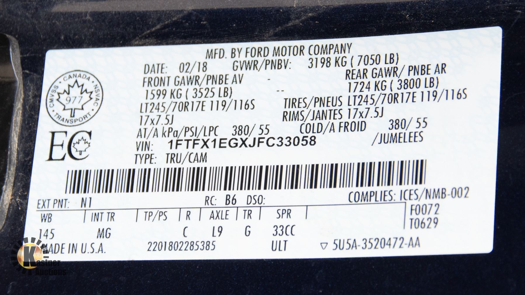 VIN: 1FTFX1EGXJFC33058