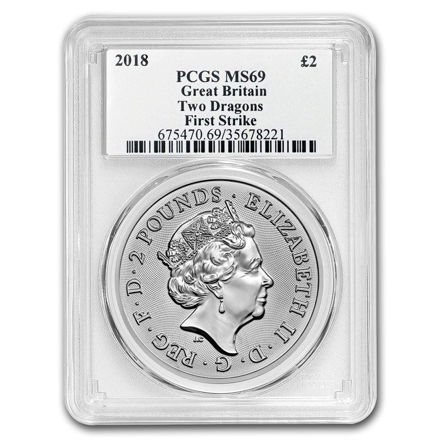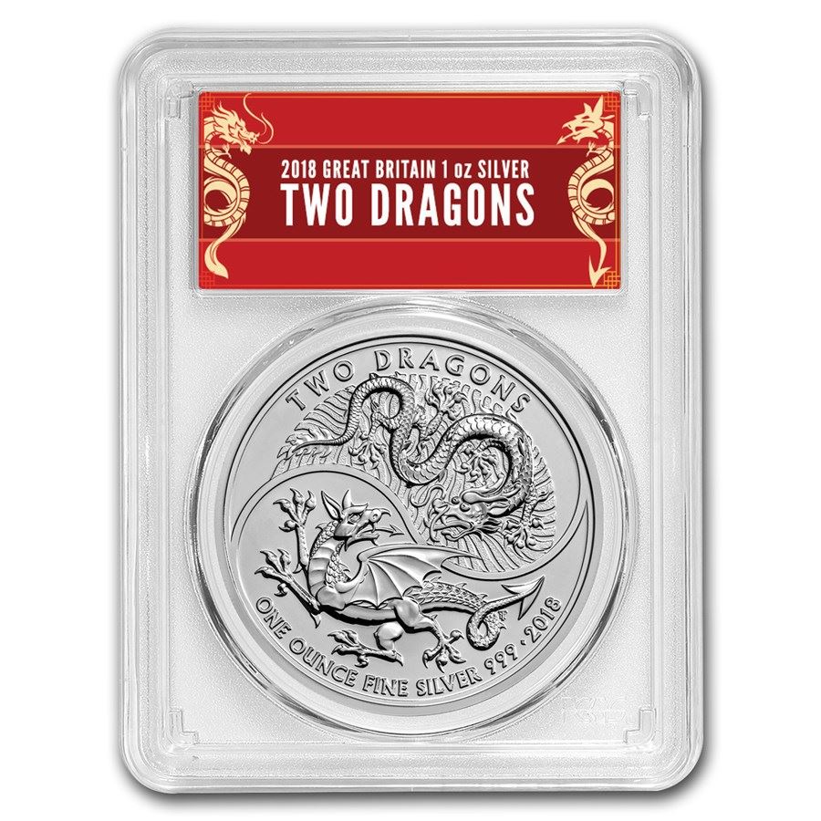 2018 GB 1 oz Silver Two Dragons MS-69 PCGS (Dragon Label)