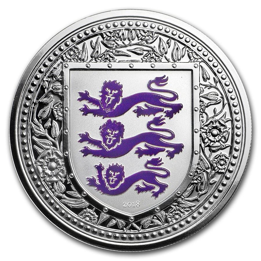 2018 Gibraltar 1 oz Silver Royal Arms of England Proof (Purple)