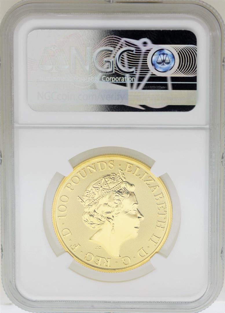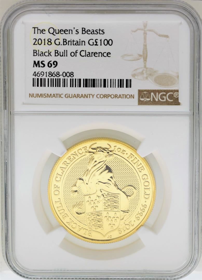 One 2018 Great Britain 100 Pounds The Queens Beasts Gold Coin NGC MS69  . NGC Certified.