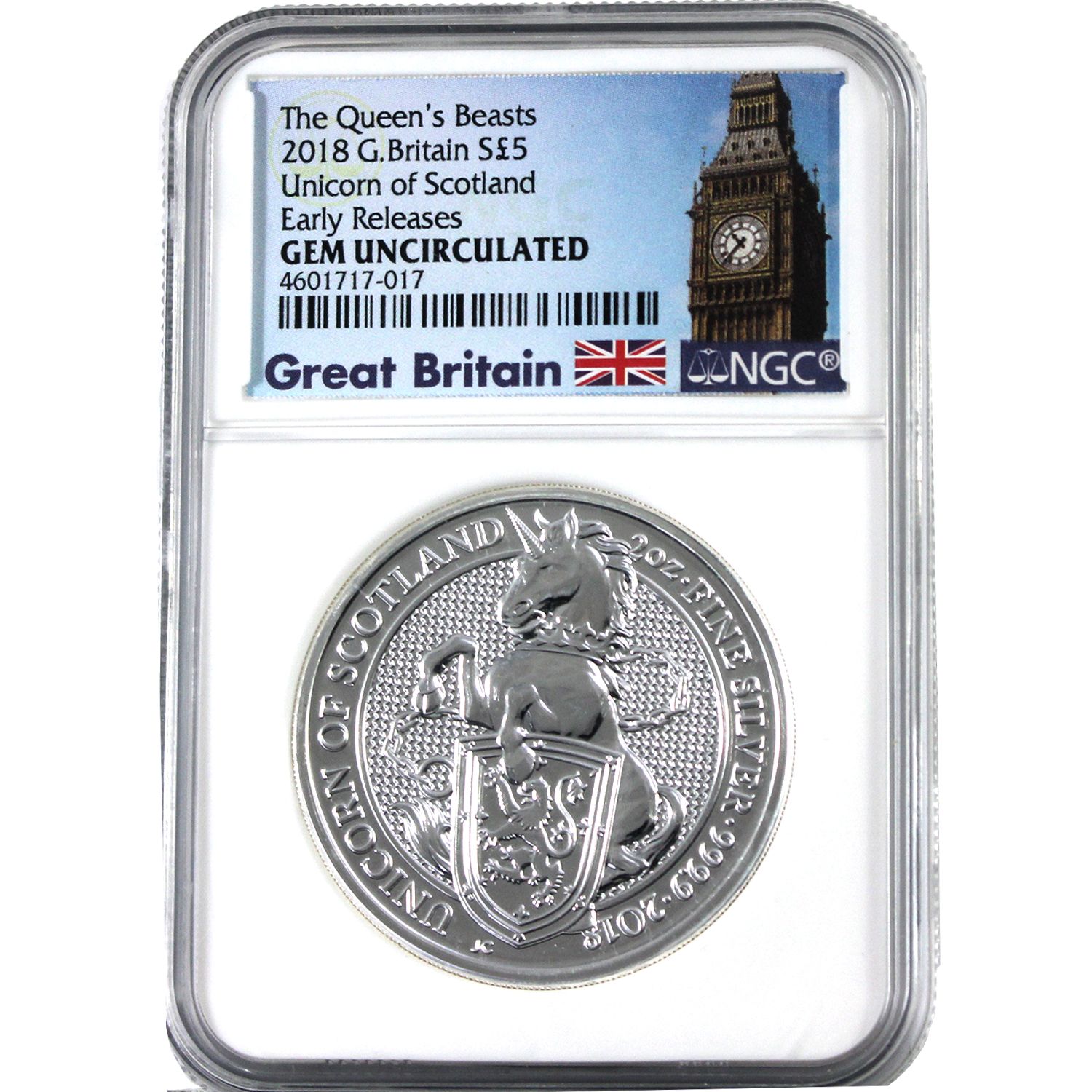 2018 Great Britain 2oz Queen's Beasts - Unicorn of Scotland NGC Certified Gem Uncirculated Early Releases (Tax Exempt)