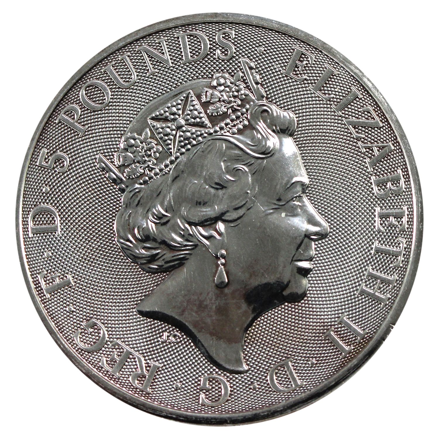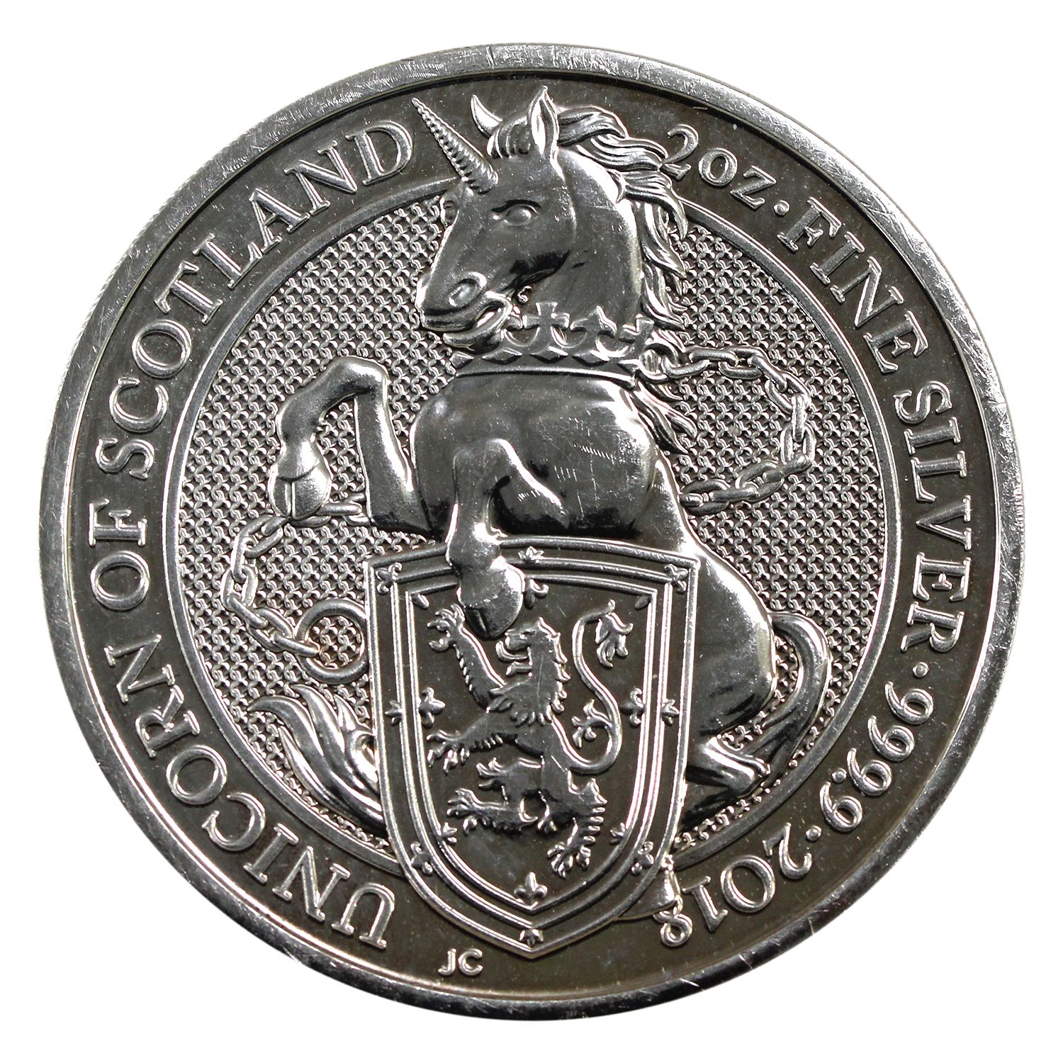 2018 Great Britain 5 Pounds 2oz Queen's Beasts - Unicorn of Scotland .9999 Fine Silver Coin (Light scratches on coin) Tax Exempt)