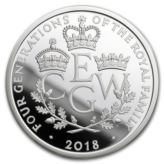 One piece 2018 Great Britain £5 Proof Silver Four Generations Piedfort