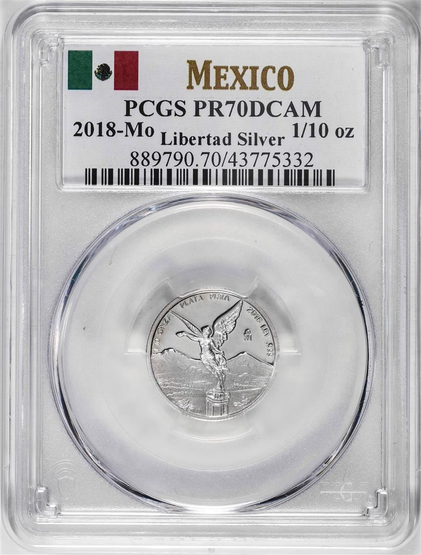 One 2018-Mo Mexico Proof 1/10 oz Silver Libertad Coin PCGS PR70DCAM. PCGS Graded.