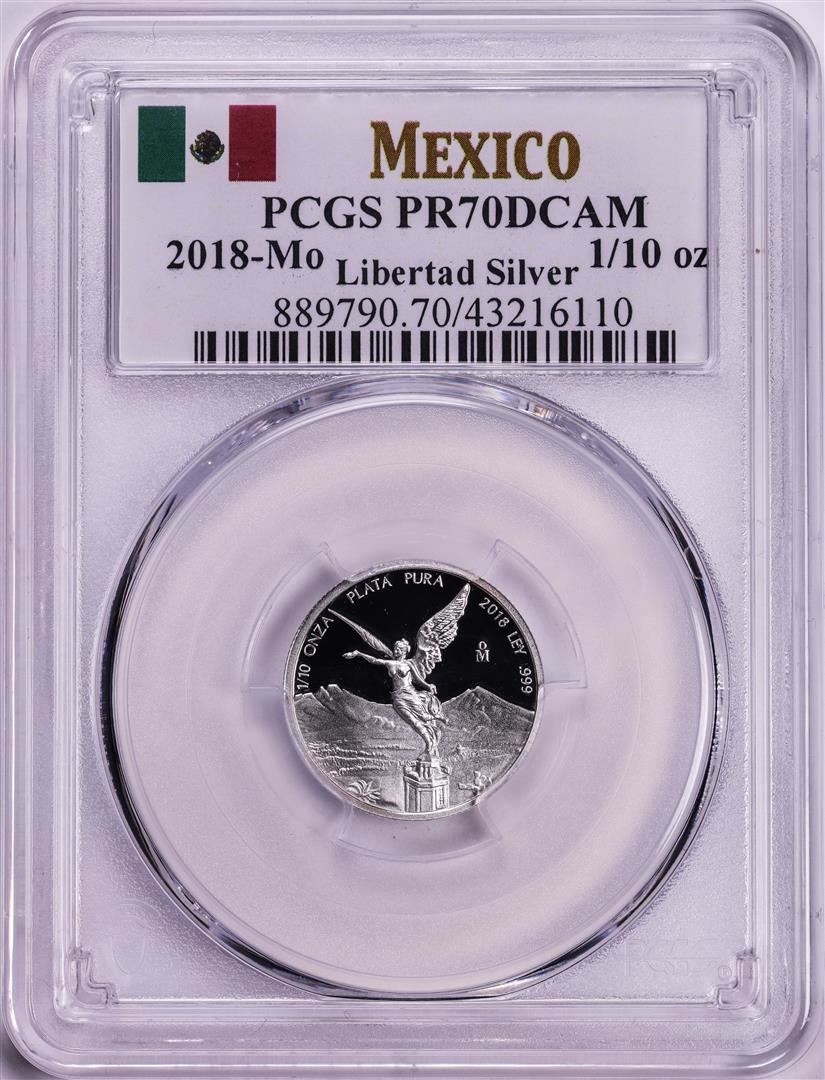 One 2018-Mo Mexico Proof 1/10 oz Silver Libertad Coin PCGS PR70DCAM. PCGS Graded.