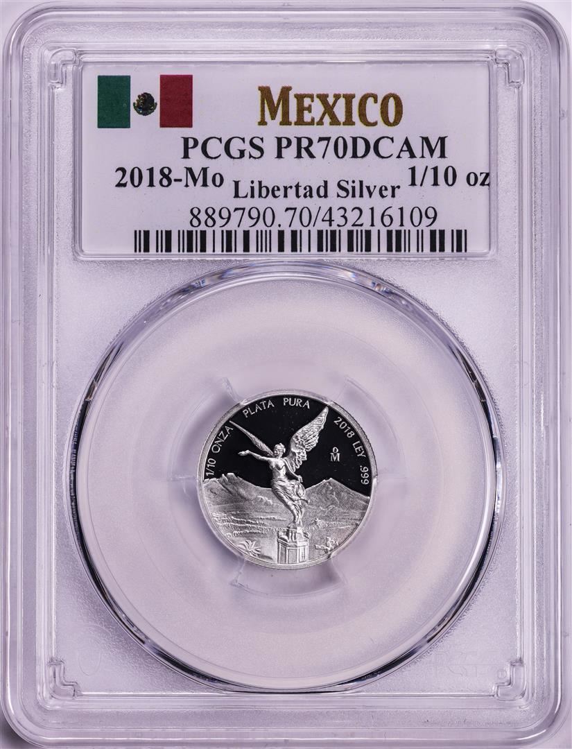 One 2018-Mo Mexico Proof 1/10 oz Silver Libertad Coin PCGS PR70DCAM. PCGS Graded.
