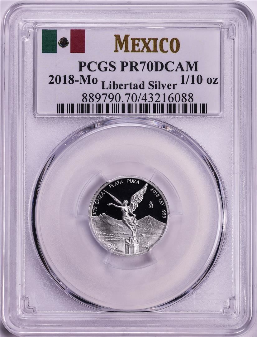 One 2018-Mo Mexico Proof 1/10 oz Silver Libertad Coin PCGS PR70DCAM. PCGS Graded.
