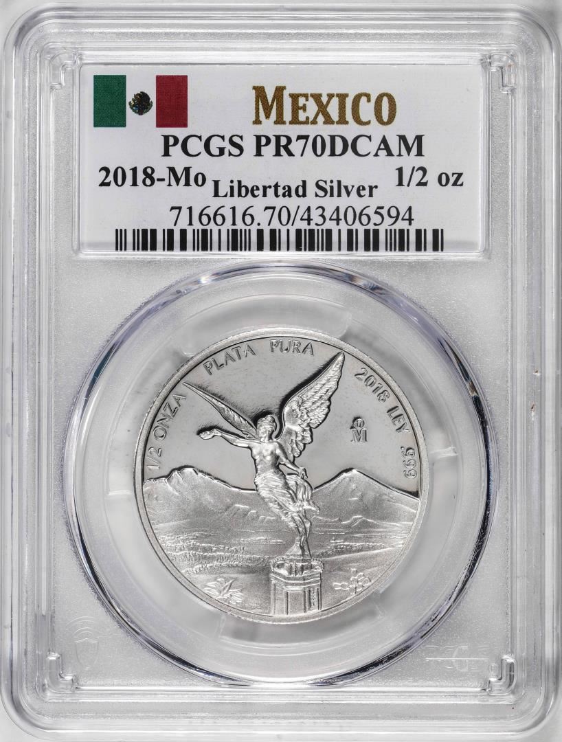 One 2018-Mo Mexico Proof 1/2 oz Silver Libertad Coin PCGS PR70DCAM. PCGS Graded.