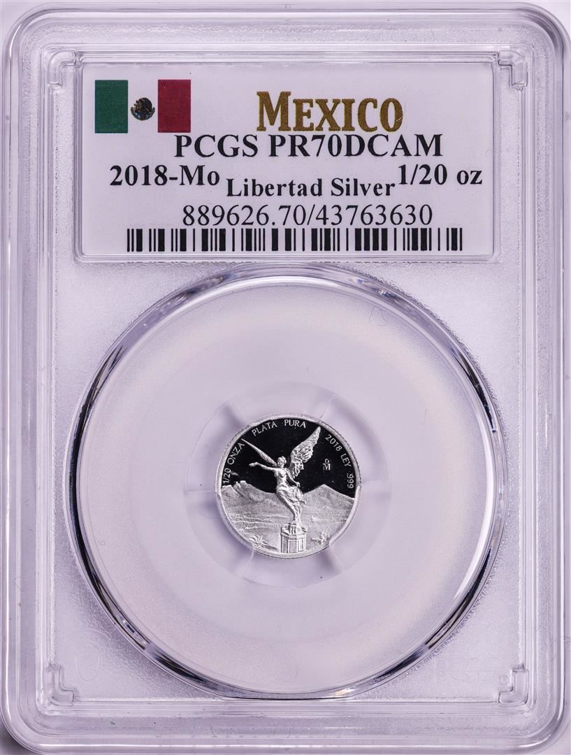 One 2018-Mo Mexico Proof 1/20 oz Silver Libertad Coin PCGS PR70DCAM. PCGS Graded.