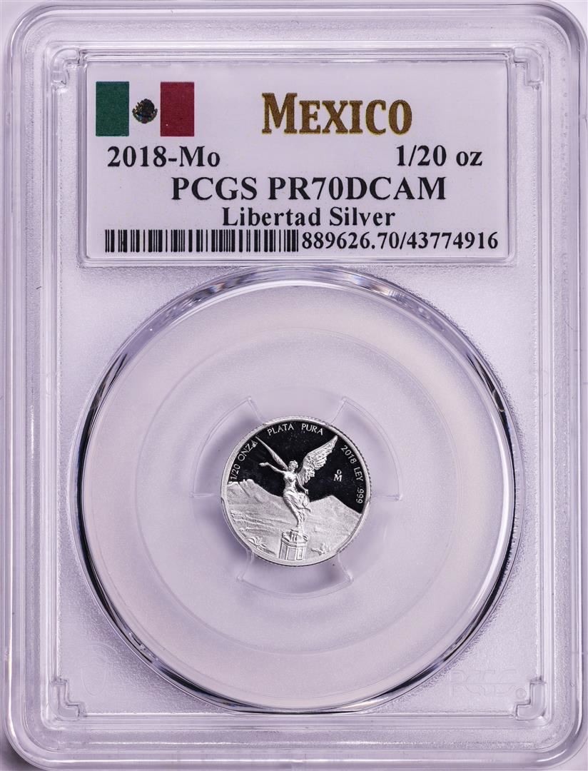 One 2018-Mo Mexico Proof 1/20 oz Silver Libertad Coin PCGS PR70DCAM. PCGS Graded.