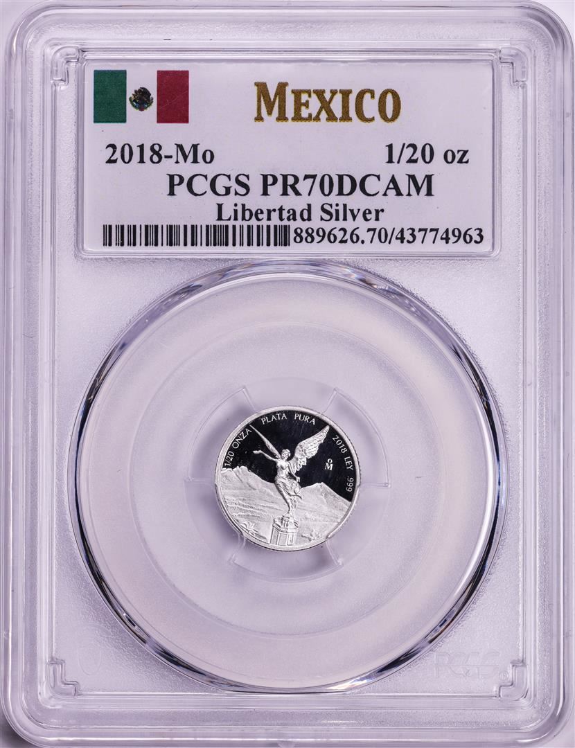 One 2018-Mo Mexico Proof 1/20 oz Silver Libertad Coin PCGS PR70DCAM. PCGS Graded.