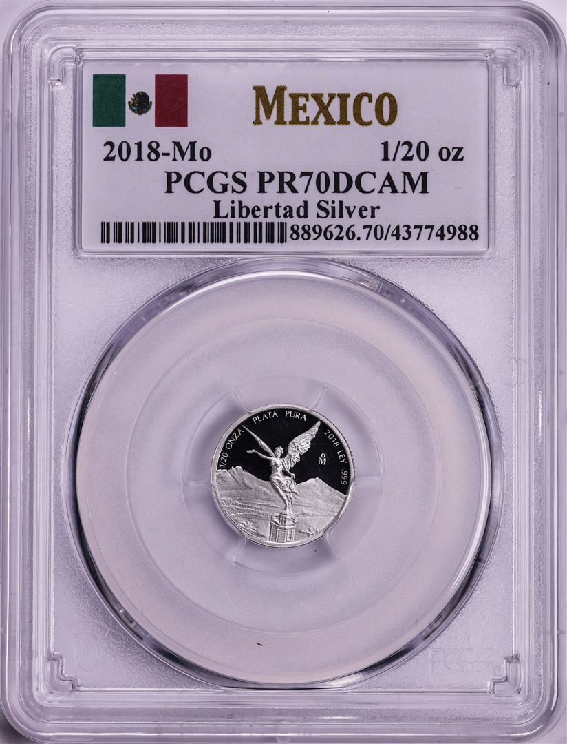 One 2018-Mo Mexico Proof 1/20 oz Silver Libertad Coin PCGS PR70DCAM. PCGS Graded.