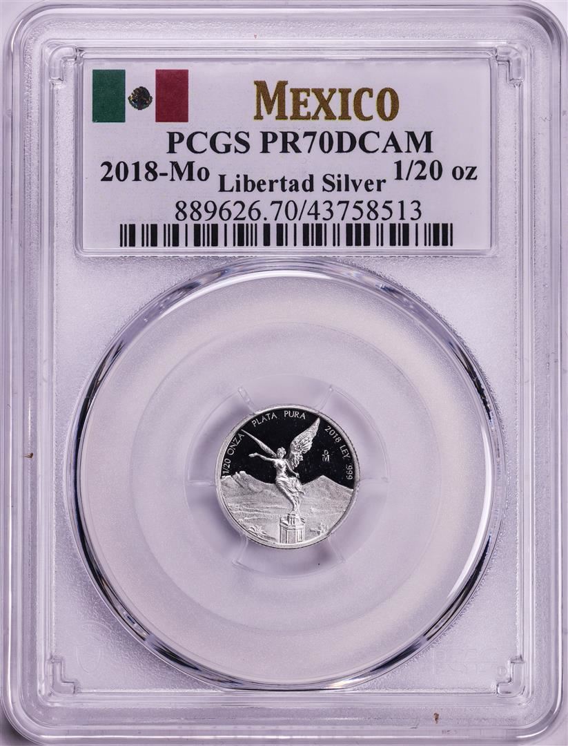 One 2018-Mo Mexico Proof 1/20 oz Silver Libertad Coin PCGS PR70DCAM. PCGS Graded.