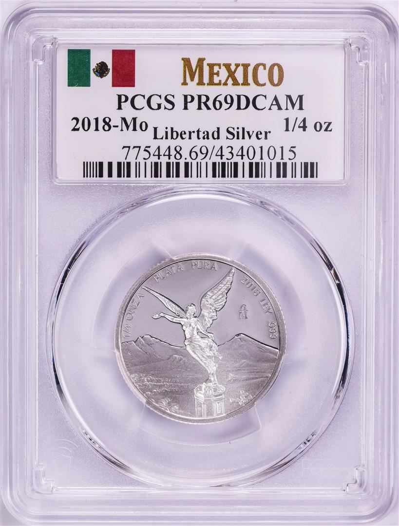 One 2018-Mo Mexico Proof 1/4 oz Silver Libertad Coin PCGS PR69DCAM. PCGS Graded.