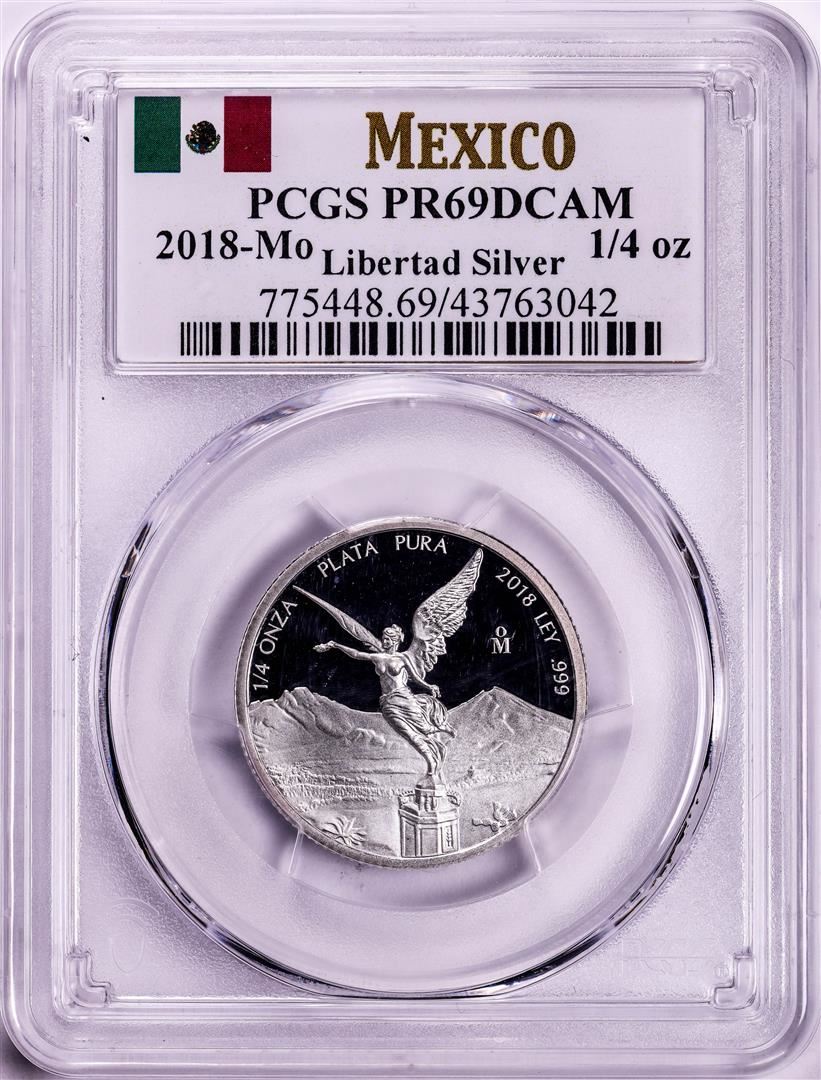 One 2018-Mo Mexico Proof 1/4 oz Silver Libertad Coins PCGS PR69DCAM. PCGS Graded.