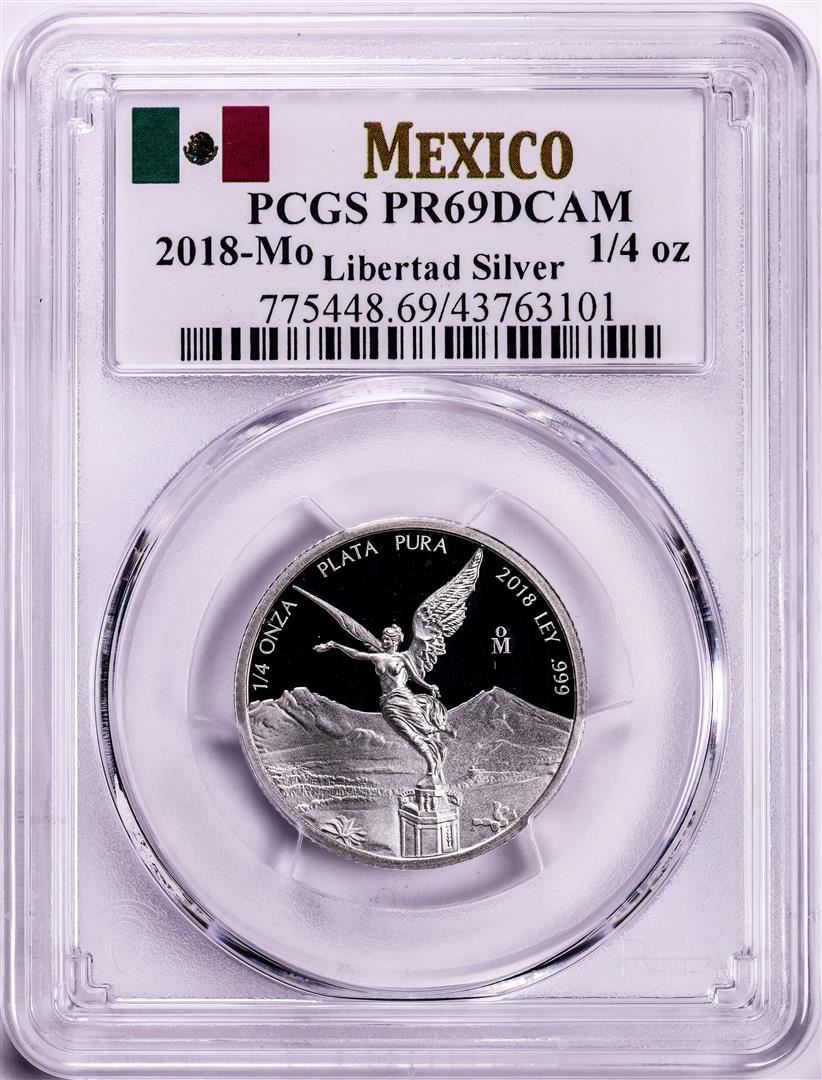 One 2018-Mo Mexico Proof 1/4 oz Silver Libertad Coins PCGS PR69DCAM. PCGS Graded.