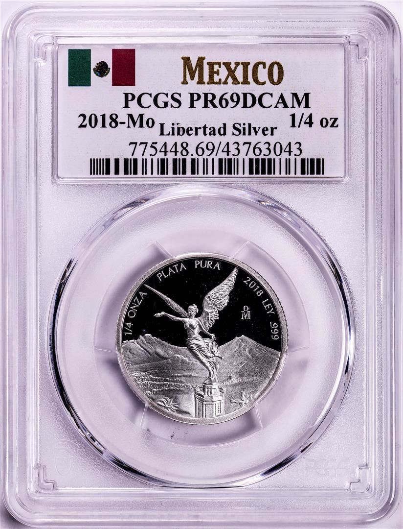 One 2018-Mo Mexico Proof 1/4 oz Silver Libertad Coins PCGS PR69DCAM. PCGS Graded.