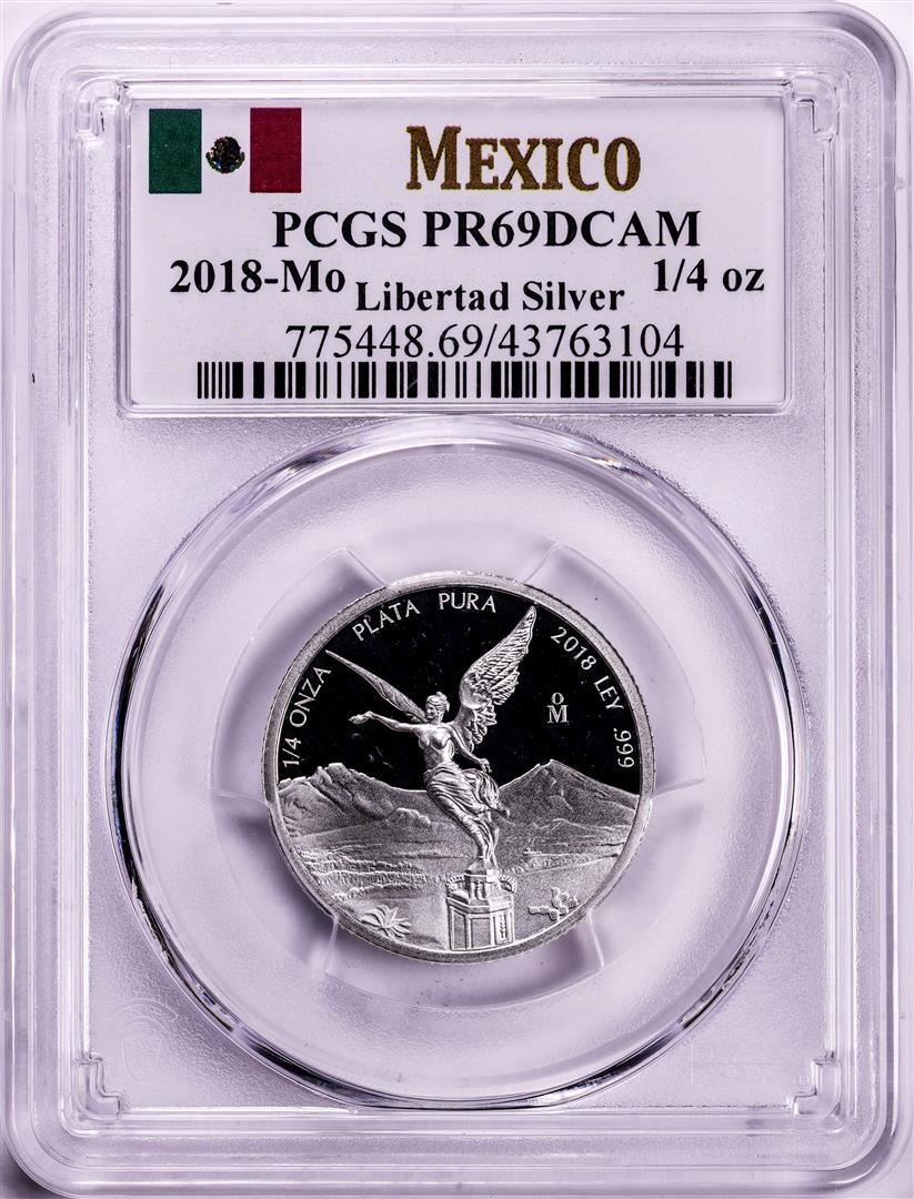 One 2018-Mo Mexico Proof 1/4 oz Silver Libertad Coins PCGS PR69DCAM. PCGS Graded.