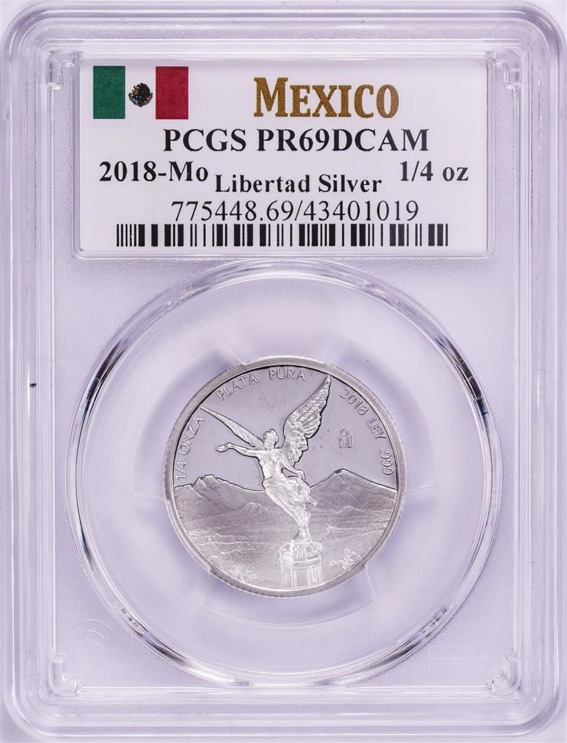 One 2018-Mo Mexico Proof 1/4 oz Silver Libertad Coin PCGS PR69DCAM. PCGS Graded.
