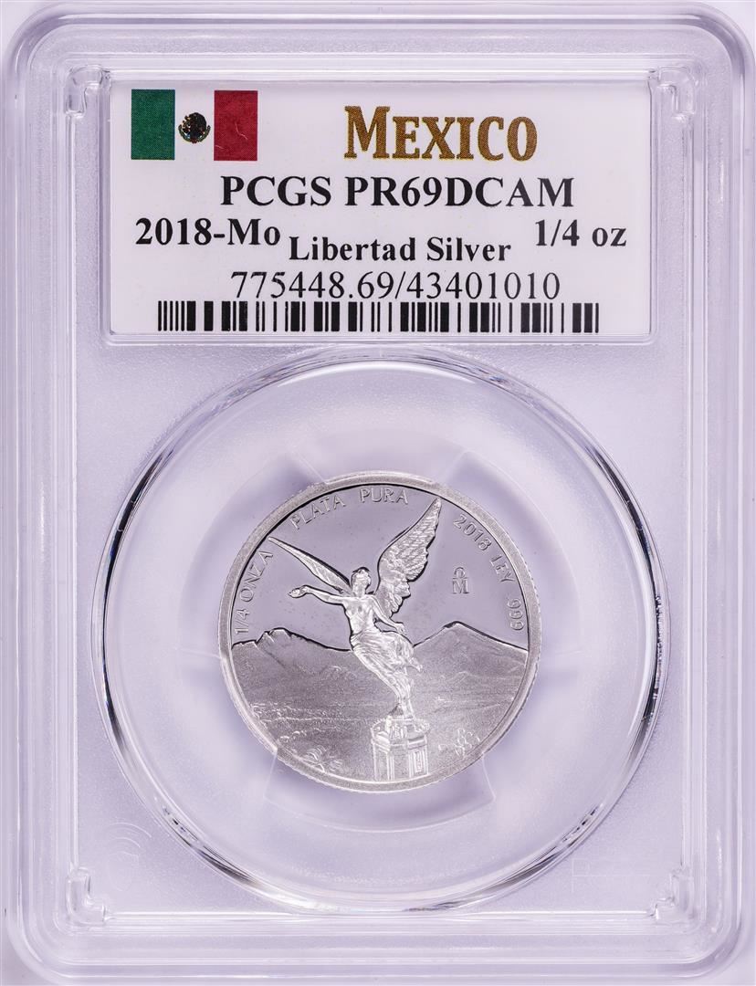 One 2018-Mo Mexico Proof 1/4 oz Silver Libertad Coin PCGS PR69DCAM. PCGS Graded.