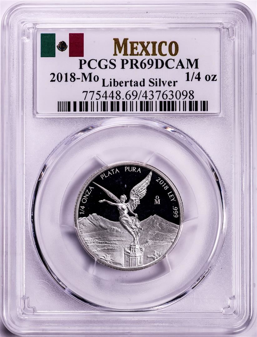 One 2018-Mo Mexico Proof 1/4 oz Silver Libertad Coins PCGS PR69DCAM. PCGS Graded.