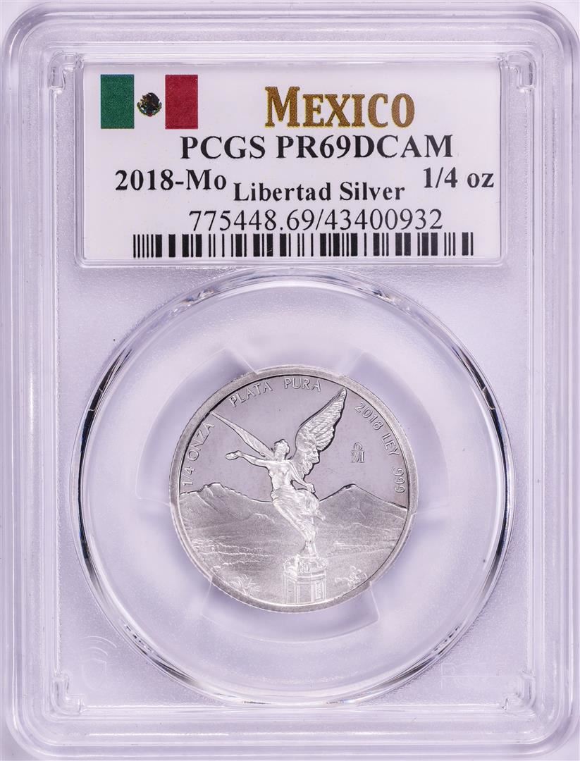 One 2018-Mo Mexico Proof 1/4 oz Silver Libertad Coin PCGS PR69DCAM. PCGS Graded.