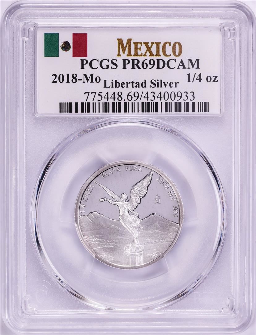 One 2018-Mo Mexico Proof 1/4 oz Silver Libertad Coin PCGS PR69DCAM. PCGS Graded.