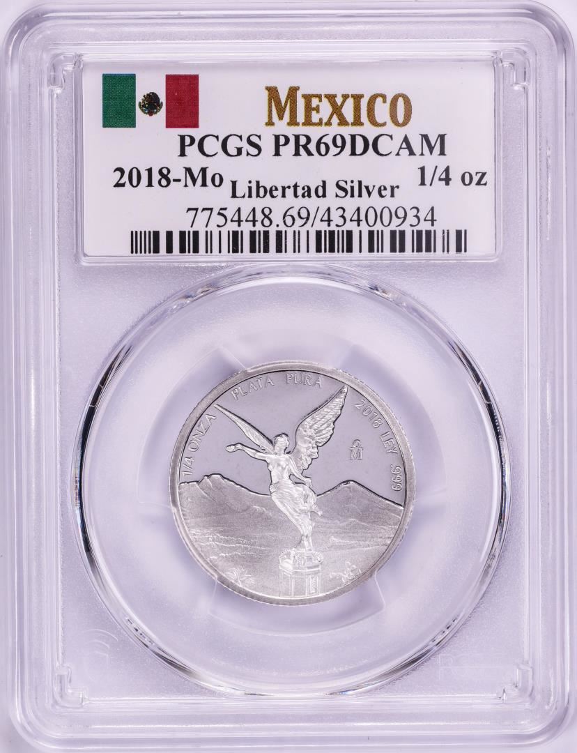 One 2018-Mo Mexico Proof 1/4 oz Silver Libertad Coin PCGS PR69DCAM. PCGS Graded.
