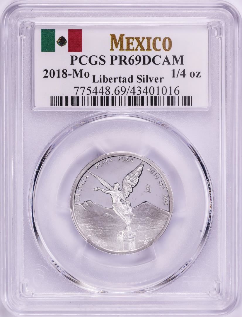 One 2018-Mo Mexico Proof 1/4 oz Silver Libertad Coin PCGS PR69DCAM. PCGS Graded.