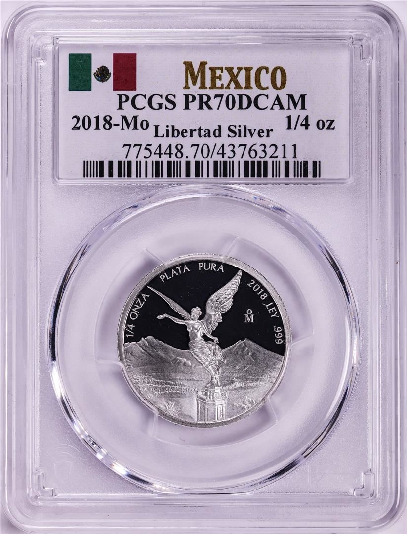 One 2018-Mo Mexico Proof 1/4 oz Silver Libertad Coin PCGS PR70DCAM. PCGS Graded.