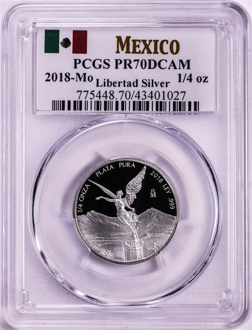 One 2018-Mo Mexico Proof 1/4 oz Silver Libertad Coin PCGS PR70DCAM. PCGS Graded.