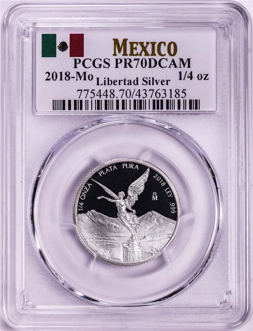 One 2018-Mo Mexico Proof 1/4 oz Silver Libertad Coin PCGS PR70DCAM. PCGS Graded.