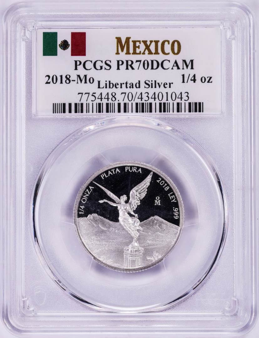 One 2018-Mo Mexico Proof 1/4 oz Silver Libertad Coin PCGS PR70DCAM. PCGS Graded.