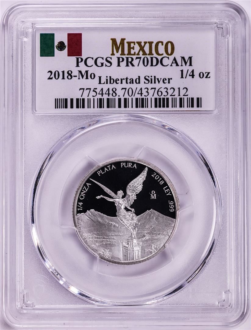 One 2018-Mo Mexico Proof 1/4 oz Silver Libertad Coin PCGS PR70DCAM. PCGS Graded.