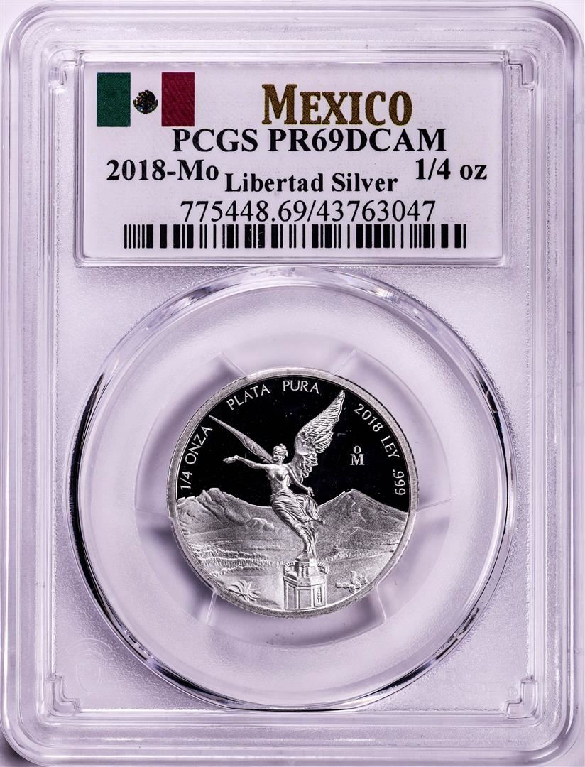 One 2018-Mo Mexico Proof 1/4 oz Silver Libertad Coins PCGS PR69DCAM. PCGS Graded.