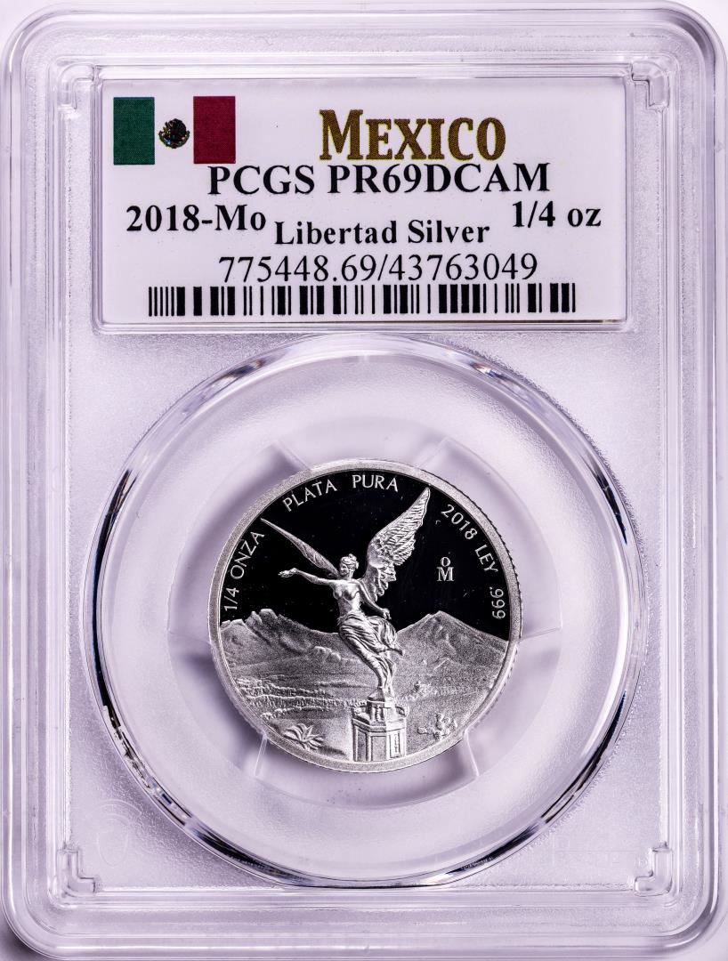 One 2018-Mo Mexico Proof 1/4 oz Silver Libertad Coins PCGS PR69DCAM. PCGS Graded.