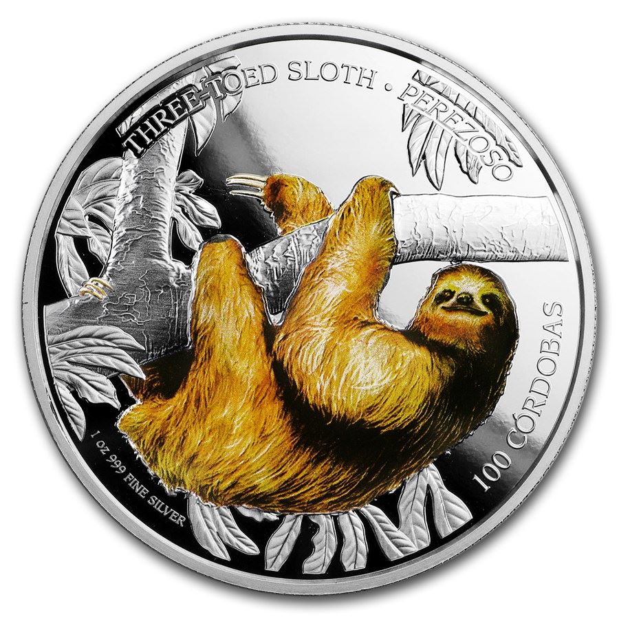 2018 Nicaragua 1 oz Silver 100 Córdobas Wildlife: Sloth