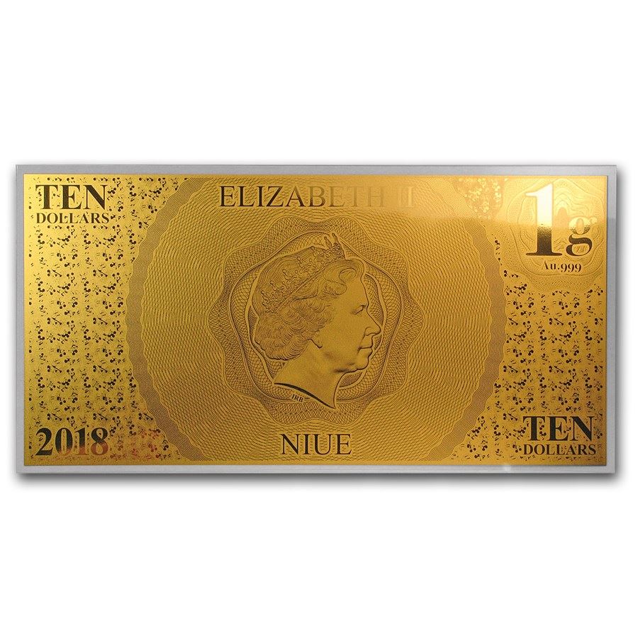 2018 Niue 1 gram Gold $10 Note Disney Mickey's 90th Anniversary